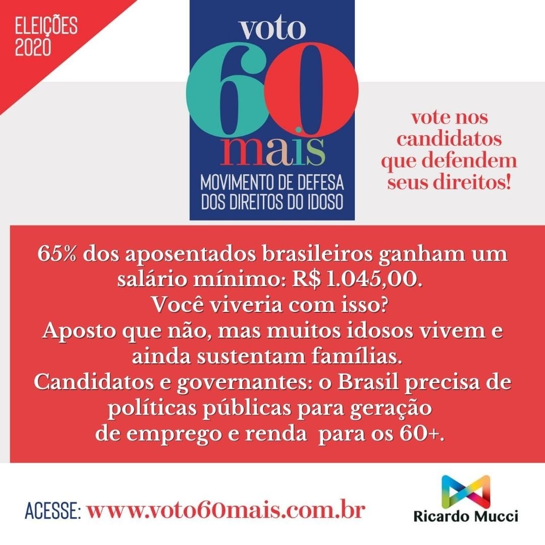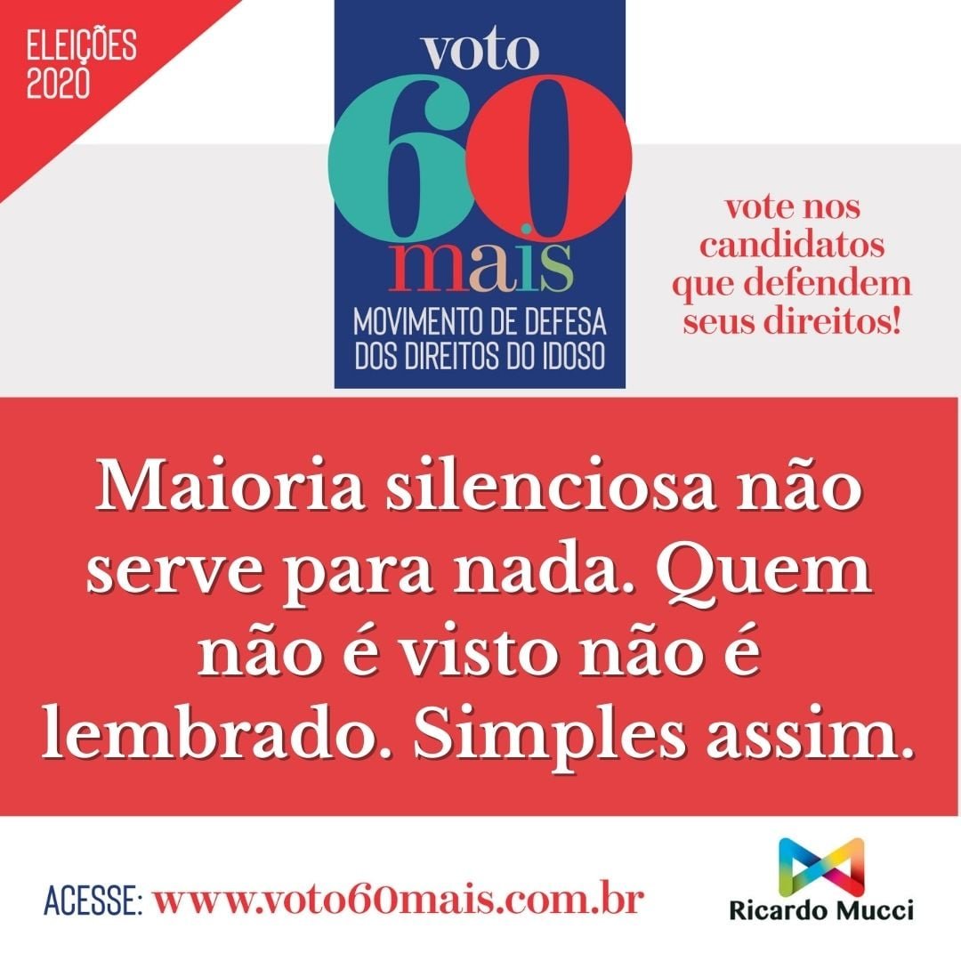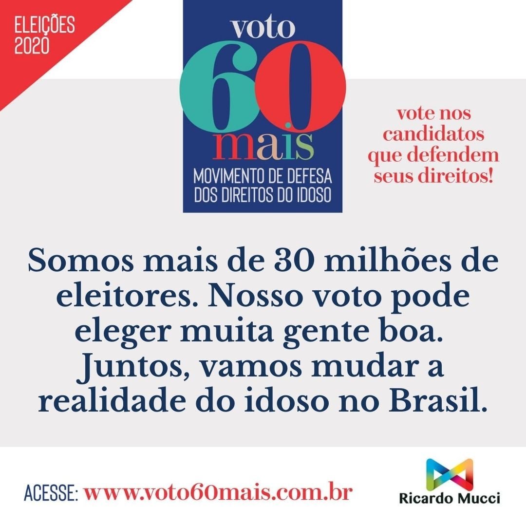O objetivo do Movimento VOTO60+ é promover uma campanha nacional em defesa dos direitos da população 60+, que estão explícitos no Estatuto do Idoso. São mais de 31 milhões de brasileiros que pedem reconhecimento, respeito e inclusão social, carências que ficaram evidentes durante a pandemia do Covid-19.