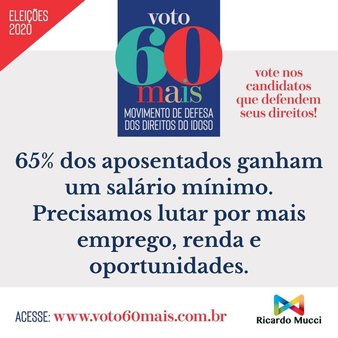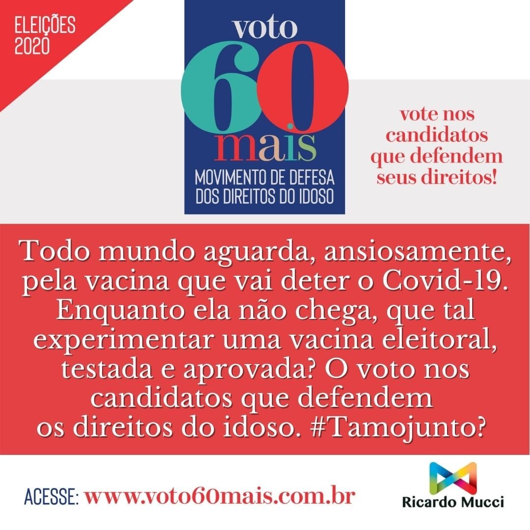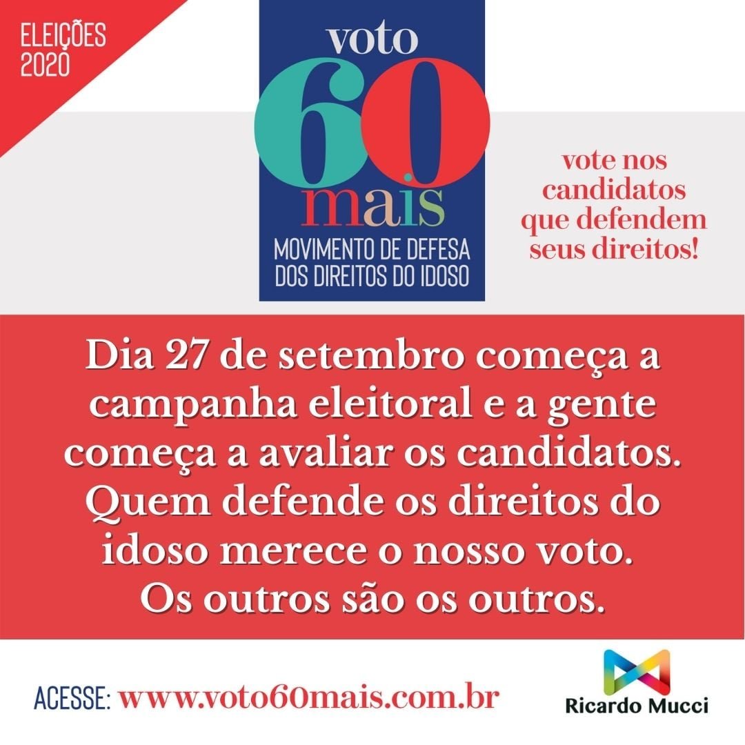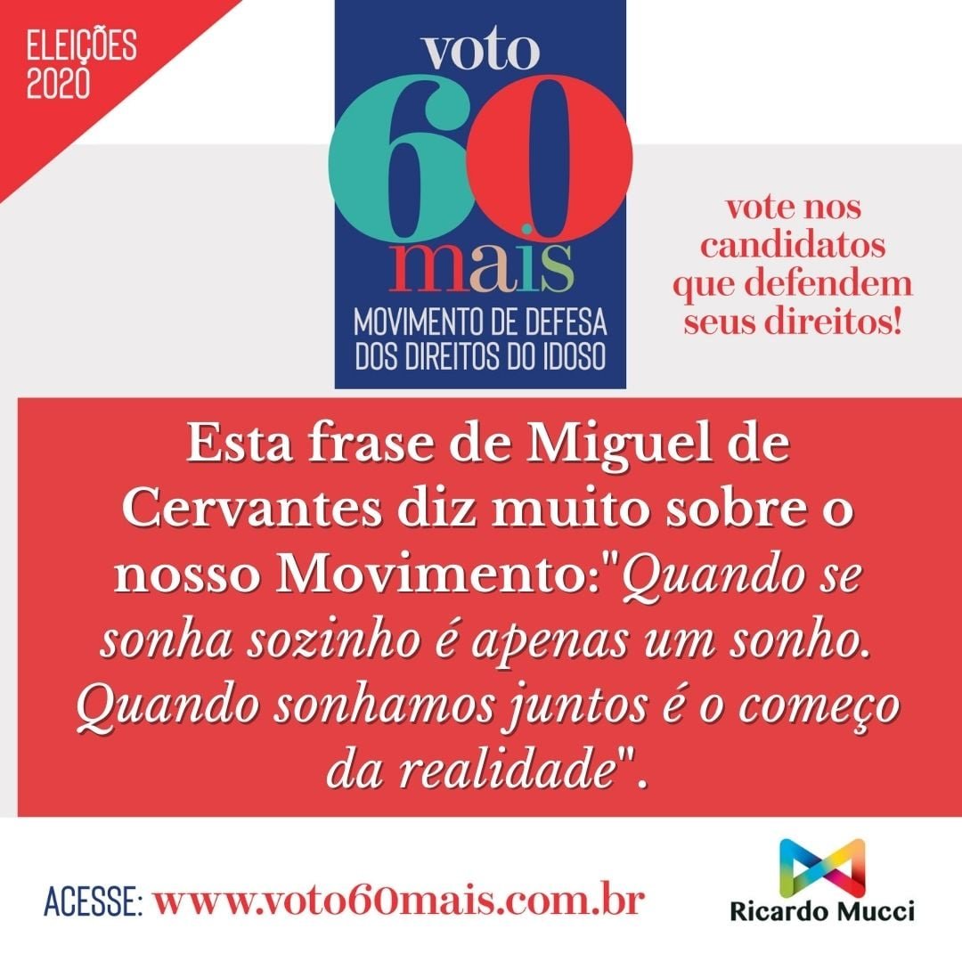 O objetivo do Movimento VOTO60+ é promover uma campanha nacional em defesa dos direitos da população 60+, que estão explícitos no Estatuto do Idoso. São mais de 31 milhões de brasileiros que pedem reconhecimento, respeito e inclusão social, carências que ficaram evidentes durante a pandemia do Covid-19.