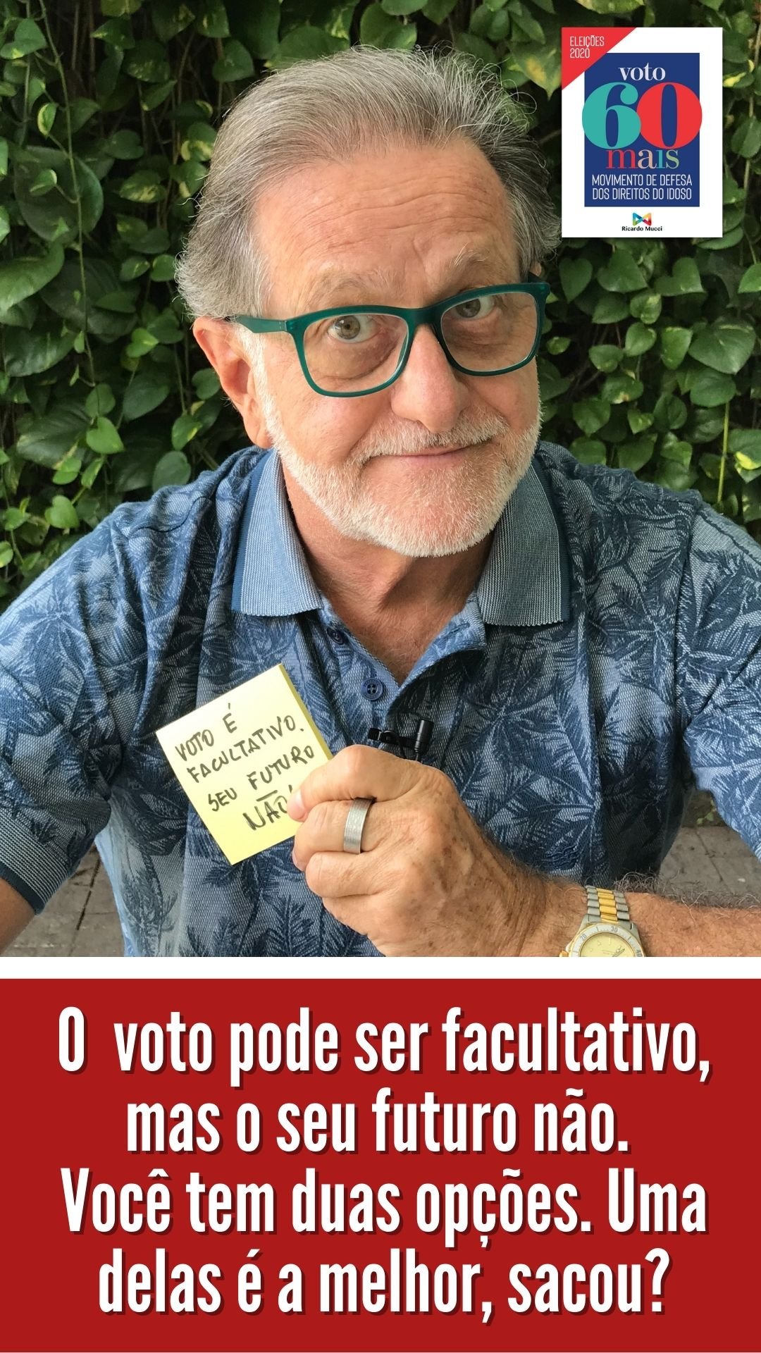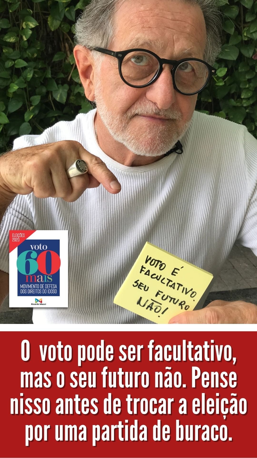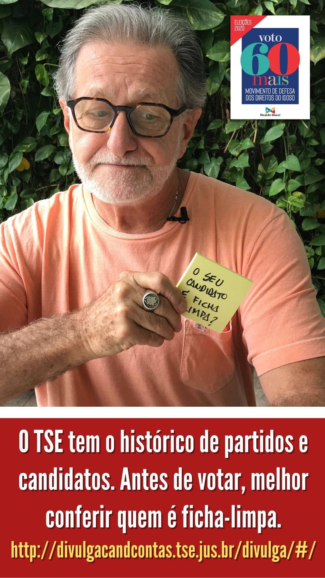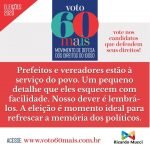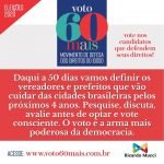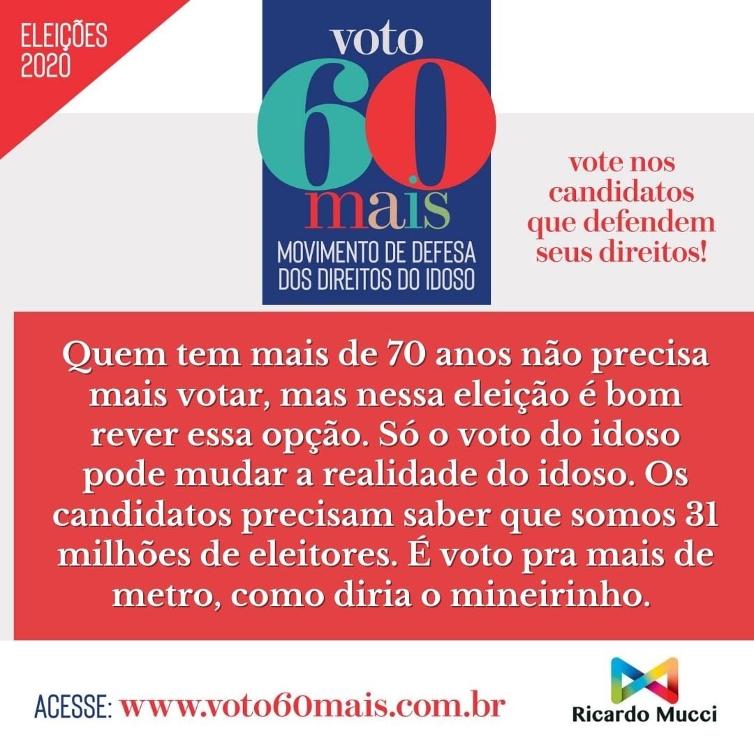 IMPORTANTE: o Movimento defende também que os eleitores idosos com mais de 70 anos, desobrigados de votar, votem e façam valer seus direitos, escolhendo os candidatos certos.