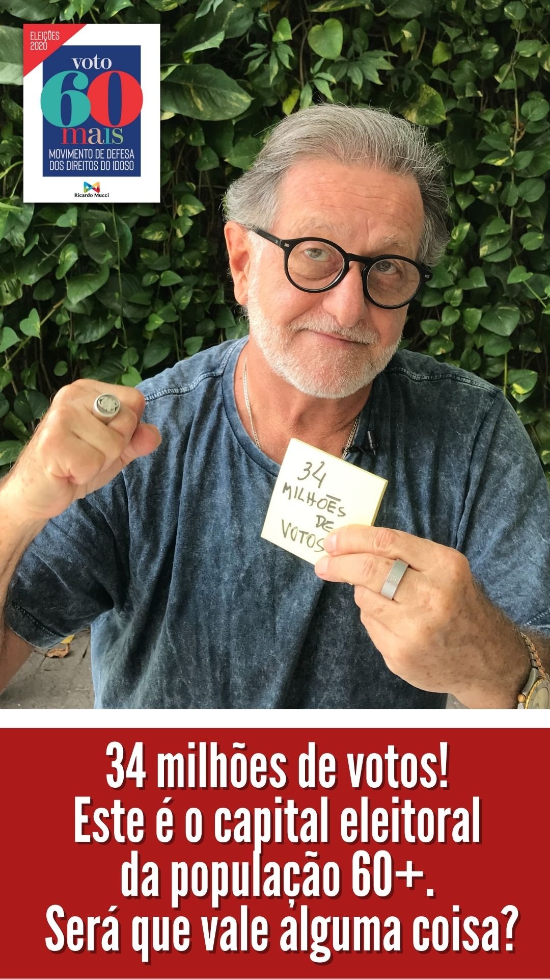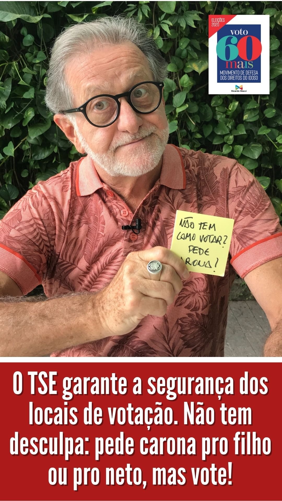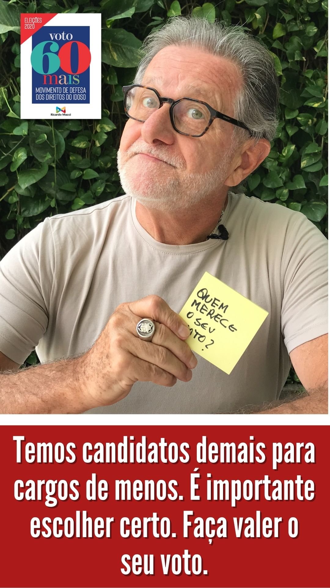 IMPORTANTE: o Movimento defende também que os eleitores idosos com mais de 70 anos, desobrigados de votar, votem e façam valer seus direitos, escolhendo os candidatos certos.