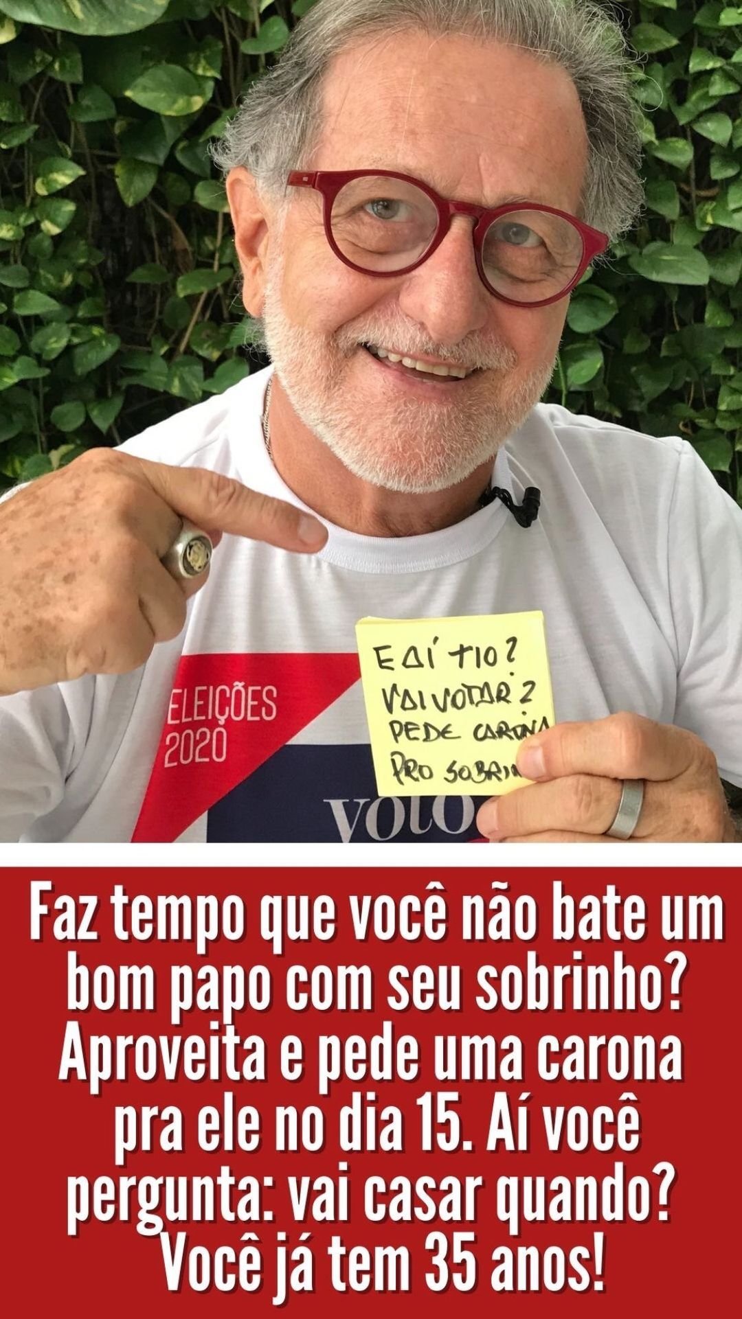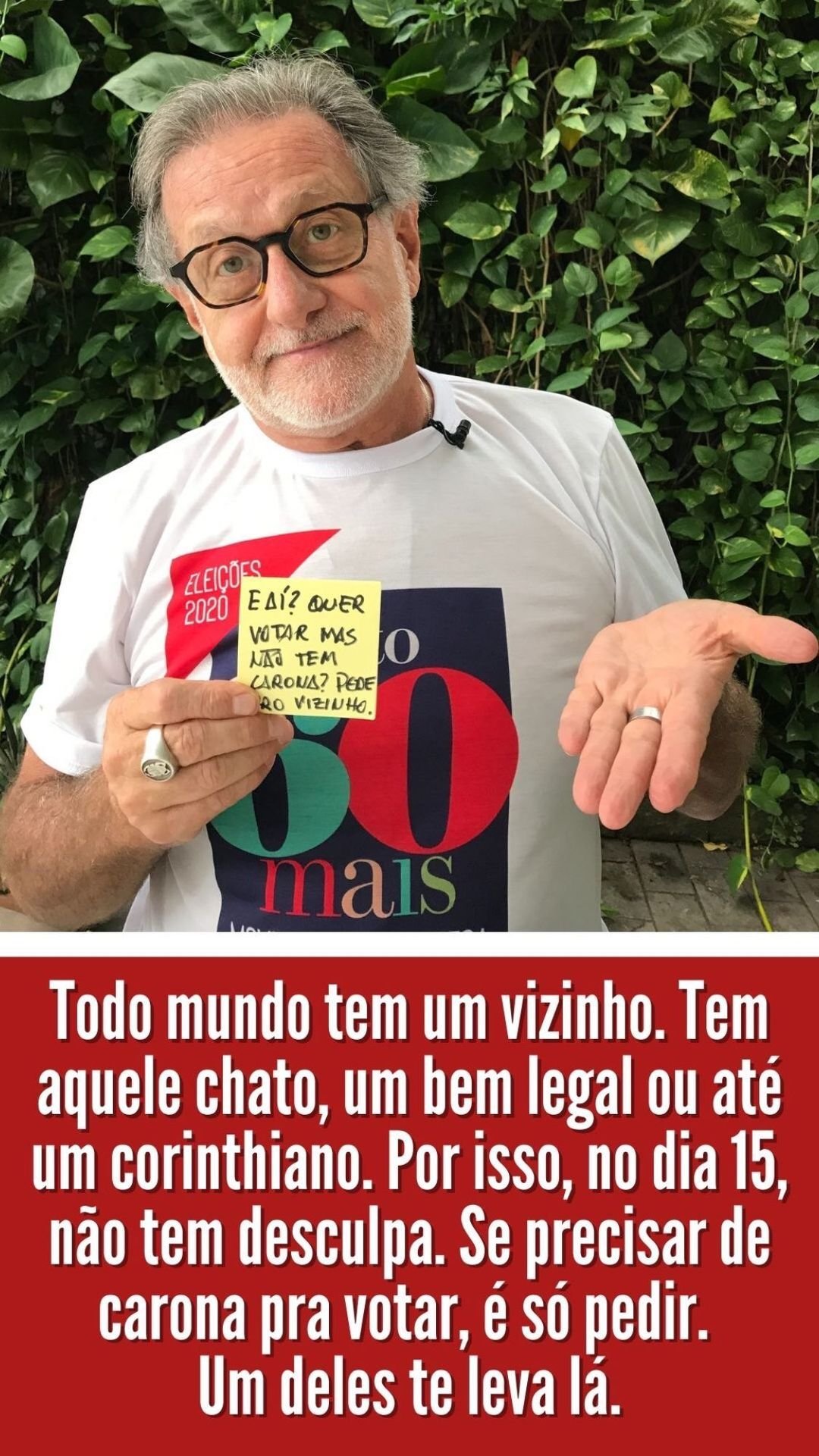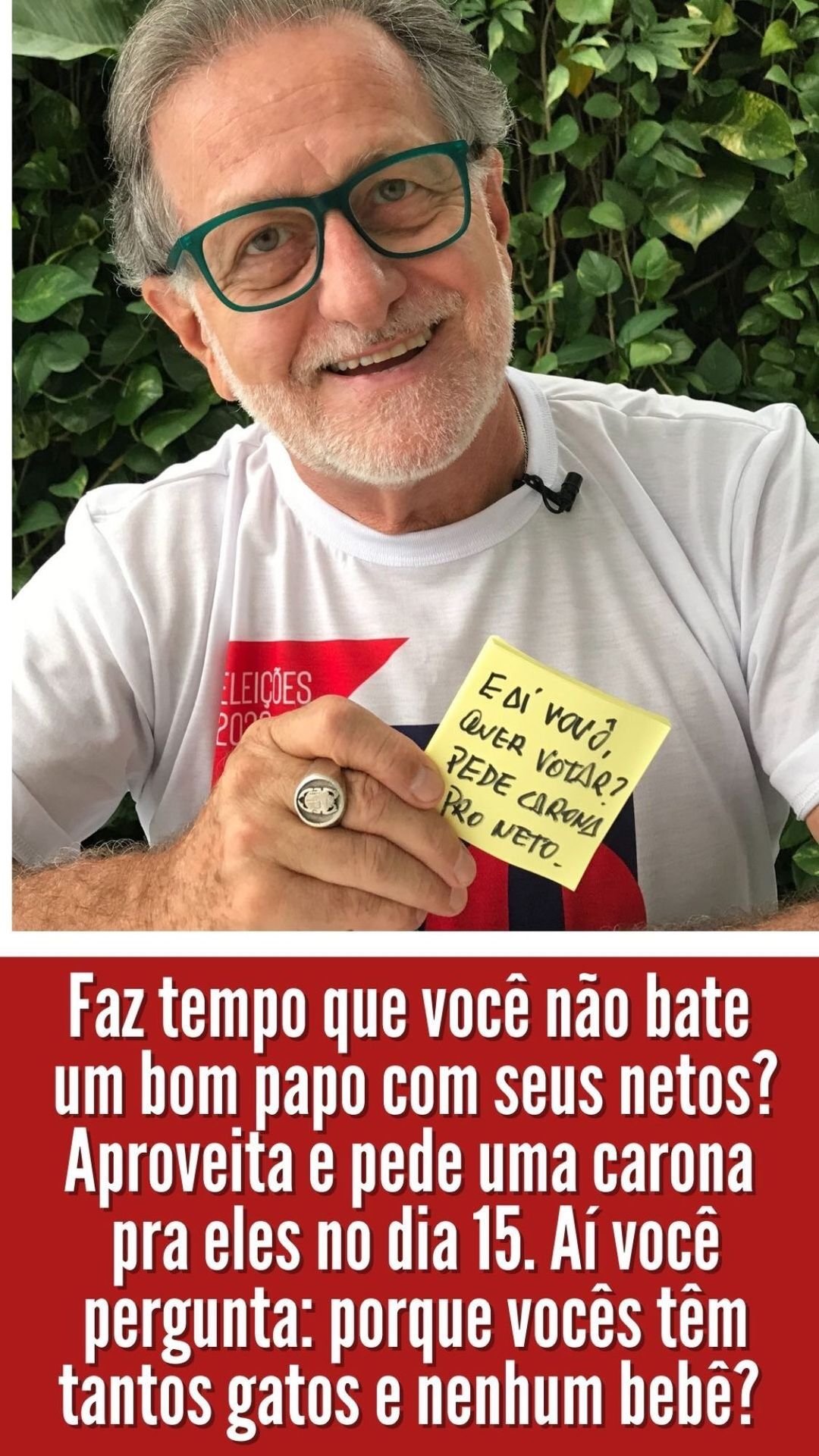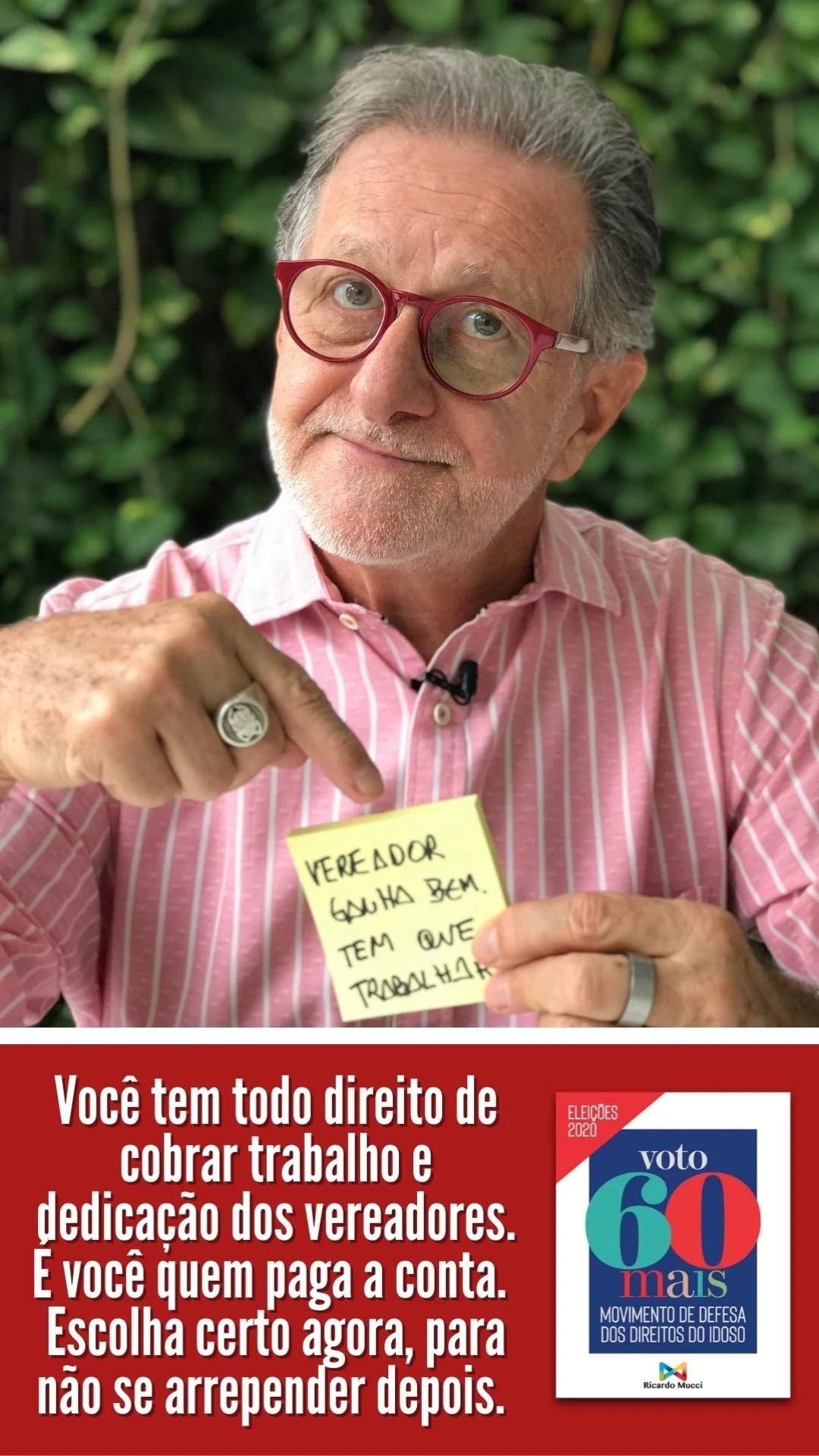 IMPORTANTE: o Movimento defende também que os eleitores idosos com mais de 70 anos, desobrigados de votar, votem e façam valer seus direitos, escolhendo os candidatos certos.