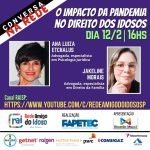 11 de fevereiro de 2021 | NovidadesIdosos têm leis, direitos e até um estatuto, só que ninguém respeita. E não é só isso: são alvos de golpes e constrangimentos diversos. Este é o tema da 3a CONVERSA NA REDE, que acontece nesta 6a feira, a partir das 4 da tarde. Ana Luiza Panyagua Etchalus e Jakeline Morais vão colocar uma luz […]